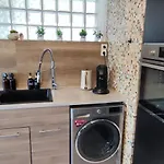 The kitchen amenities at La Vie La La - Maison Et Studios Avec Piscine, Sauna Et Salle De Jeux feature an oven and a dishwasher, provided in an outdoor dining area.